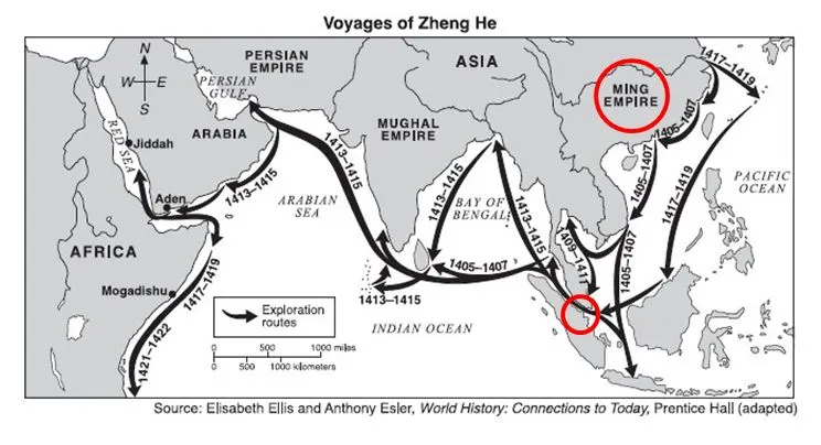 위가 명나라(중국), 아래가 작은 동그라미는 싱가포르다 (출처 : 상위 이미지 명기)