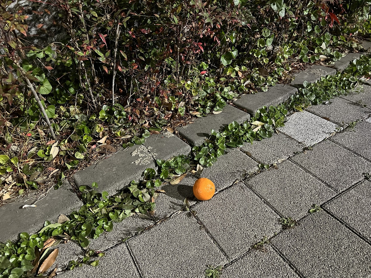 돌아오는 길에 인도 안쪽에 선명하게 떨어진 귤 하나가 눈에 들어왔다.