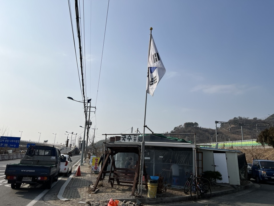 삼랑진 IC를 내려 김해/부산으로 가는 길목에 낡은 가건물로 지어진 국숫집을 하나 볼 수 있다.