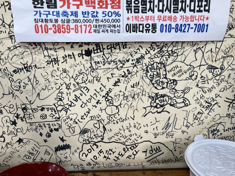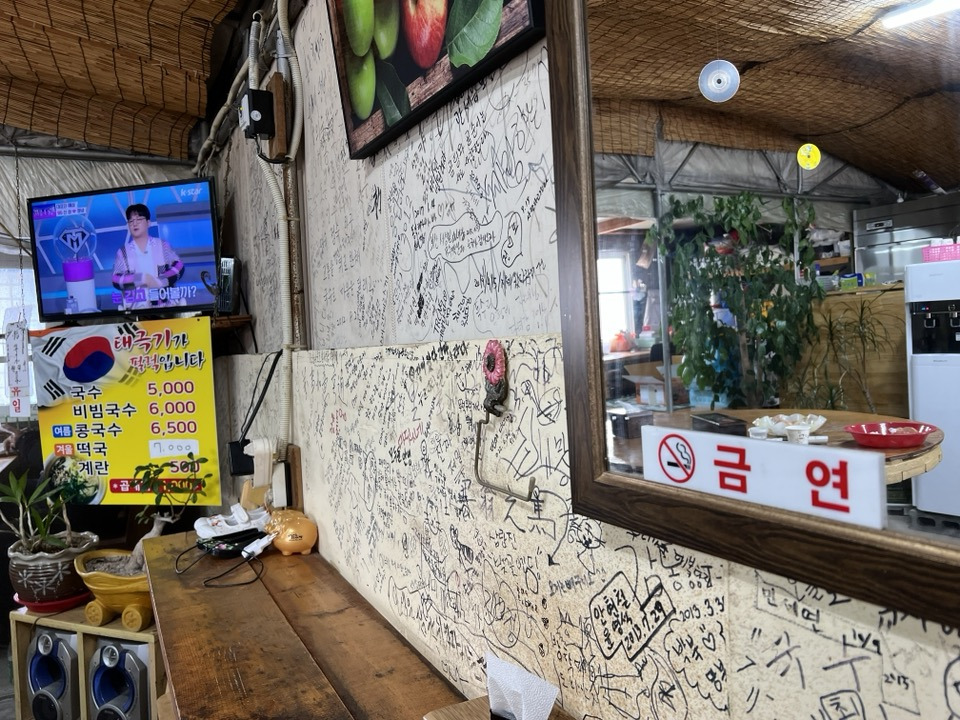 내가 이 글을 쓰는 건 국수를 기다리며 벽면에 적혀있는 낙서를 읽던 중 문득 눈에 들어오는 글 때문이다.