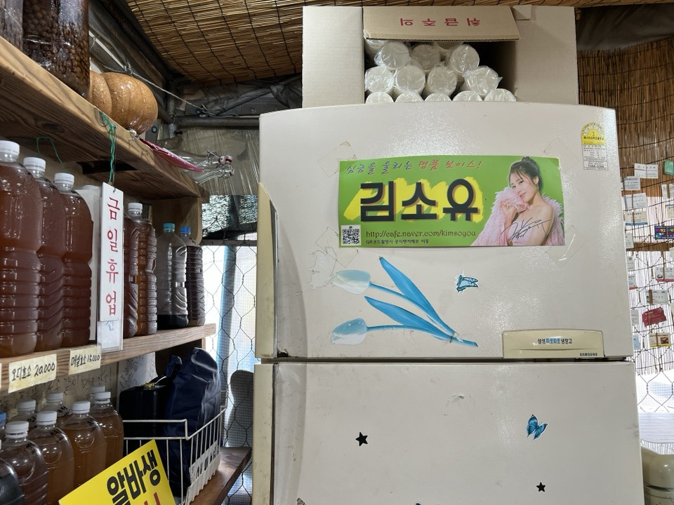 냉장고엔 '김소유' 팬카페를 홍보하는 게시물도 있었다.