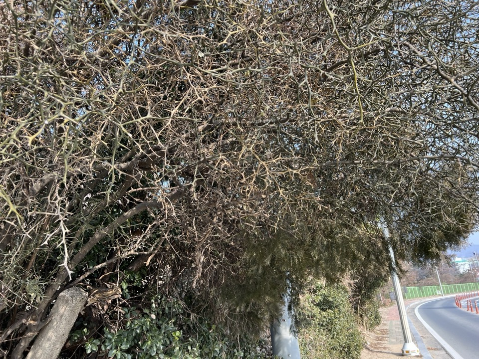 맞는지 모르겠지만 나는 이 나무를 탱자나무로 알고 있다.