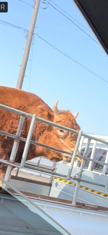 코뚜레에 사슬을 둘러 트럭 짐칸의 쇠울타리에 묶여있어 고개를 못 돌려서 그런지 눈알만 살짝 돌린채 꽤나 뻔뻔한(내가 보기엔) 눈빛으로 나를 보고 있었다.