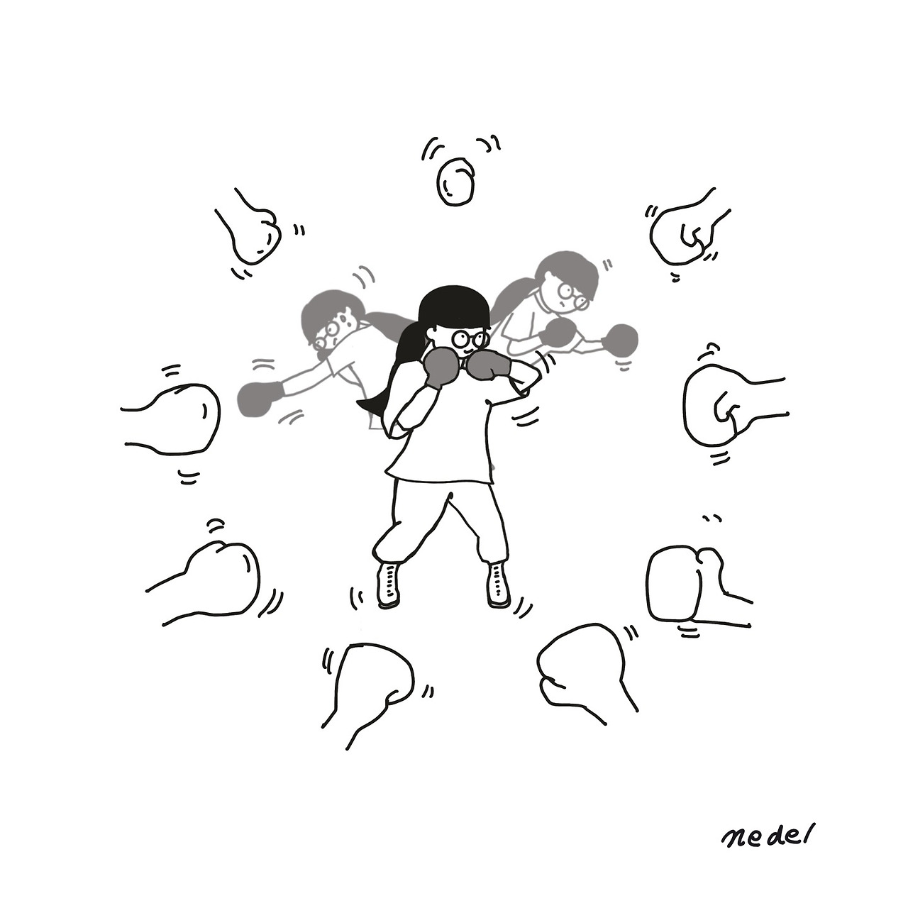 잽을 날리면서 하루, 하루가 ‘잽’의 연속이라는 생각이 든다. 대체로 무난하게 흘러가는 일상이지만, 나와 ‘관계’된 모든 것들과 알게 모르게 잽 같은 공격을 주고받는다. 그 '잽’은 말일 수도 있고, 행동일 수도 있고, 눈에 보이지 않는 마음일 수도 있다. 잽을 너무 빠르게 회수해서, 타격감이 그리 심하지 않아서, 너무 익숙해져서 그게 ‘공격’인 줄도 모르고 지날 때가 많다. 사실 알아도 무시해 버린다.