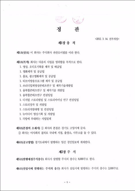 파란오이 설립초기시 만들어진 정관의 일부다.