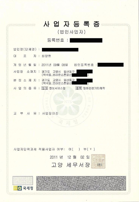 사업자등록증에 기입되는 사업의 종류 항목에 들어가야 하는 이른바 ‘업태’와 ‘종목’을 고르는 것도 필요하다. 업태는 사업의 형태를 말한다. 보통 제조업, 서비스업, 건설업, 금융업, 임대업 등으로 이야기하는 것들이 바로 업태다. 종목은 사업의 종목 즉 업태 안에서 다시 구별되는 세부적인 사업의 카테고리를 칭한다. 서비스업이라면 디지털 콘텐츠, 소프트웨어 개발 등이 종목에 해당될 것이다. 내 경우 업태는 정보서비스업 종목은 영화 관련 기타 제작으로 설정했다. 업태의 종목의 설정은 통계청의 통계분류 포털의 한국표준산업분류 검색 코너에 들어가 진행하면 쉽다. 자신이 하고자 하는 사업에 대한 키워드를 검색어란에 넣고 검색하면 색인어들의 나오는 데 그중 자신에게 가장 적합하다고 판단한 것을 고르면 된다. 포털의 주소는 다음과 같다.