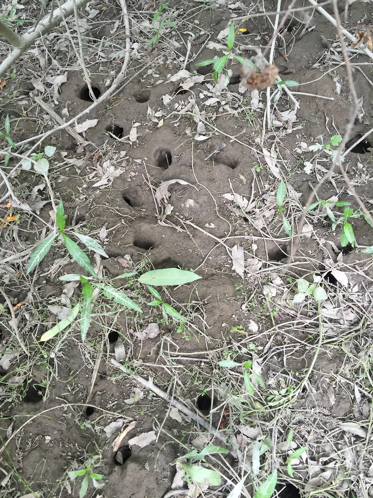 하지만 땅으로 고개를 돌리면, 선명한 고라니 발짜국이 눈에 찍힌다. 깊이와 모양으로 추측하건데, 푹하고 체중이 실렸다. 달린 흔적인데 어디까지 가다 버드나무 숲 속으로 쏙 들어간 것일까? 따라가 보고 싶지만, 한두 마리 자국이 아니다. '아, 그러니까 바로 근처에 야생이 있었네' 하며 쪼그리고 앉는 순간, 이곳이 습지, 갯벌이란 사실을 다시 실감한다.