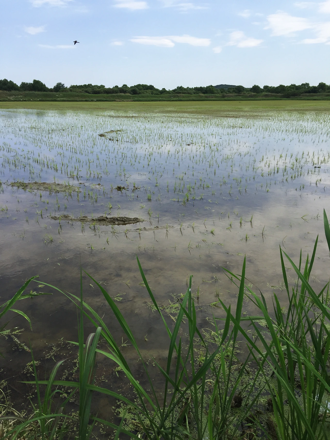 하늘이 마주 닿을 듯하고, 논이 있고, 앞으로 시야가 트였다. 다행이다. 곤충처럼 시야가 그렇게 넓었더라면, 이런 기분은 못 느꼈을 거야.