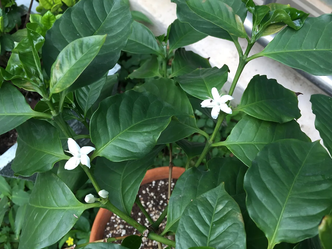 나이테가 만들어졌는지는 확실치 않지만, 사람의 욕심이 점점 자랐다는 것만큼은 확실하다. 아니 손톱만한 콩에서 시작한 저 생명이 더 많은 잎을 틔우고 나무의 몸을 만들어갈 때, 우리가 꽃을 소망하게 되었으니까. '꽃을 보아야지' 하면서. 그렇게 해서 꽃을 본다. 지구 저쪽 어디쯤에서는, 커피농장에서 떼로 피어나는 흔하디 흔한 꽃이겠지. 하지만 우리 집 화분에서 피어난 몇 송이는 큰 감동과 위안이다. "좋은 일이 있을 모양이야" 우리 꽃을 보고 동네 아주머니는 희망을 주고 갔다. 그래. 꽃을 기다리는 사람의 심정이 다 이러하리.