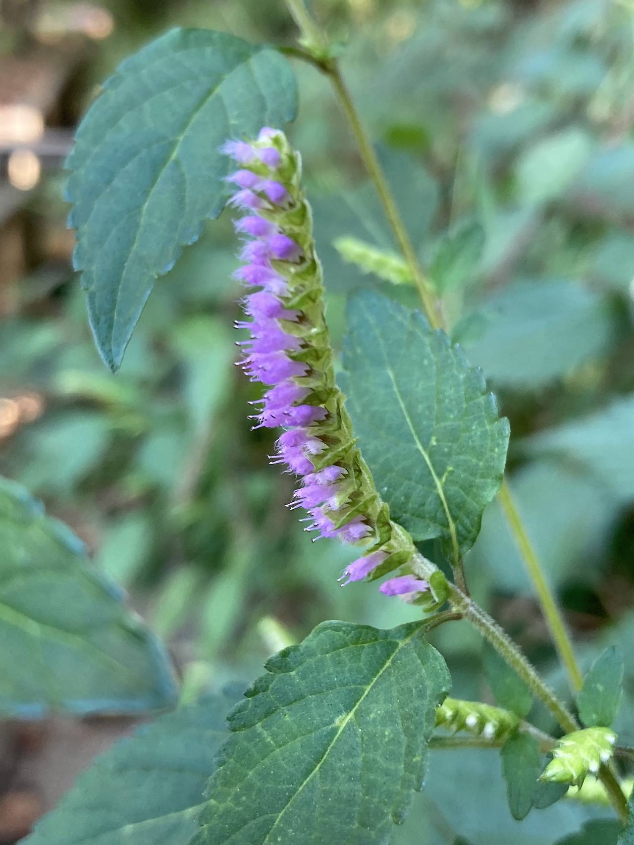 한쪽 방향으로만 가지런히 피는 보랏빛 <향유> 꽃, 하지만 그 좋은 냄새는 잎에서 나는 걸.