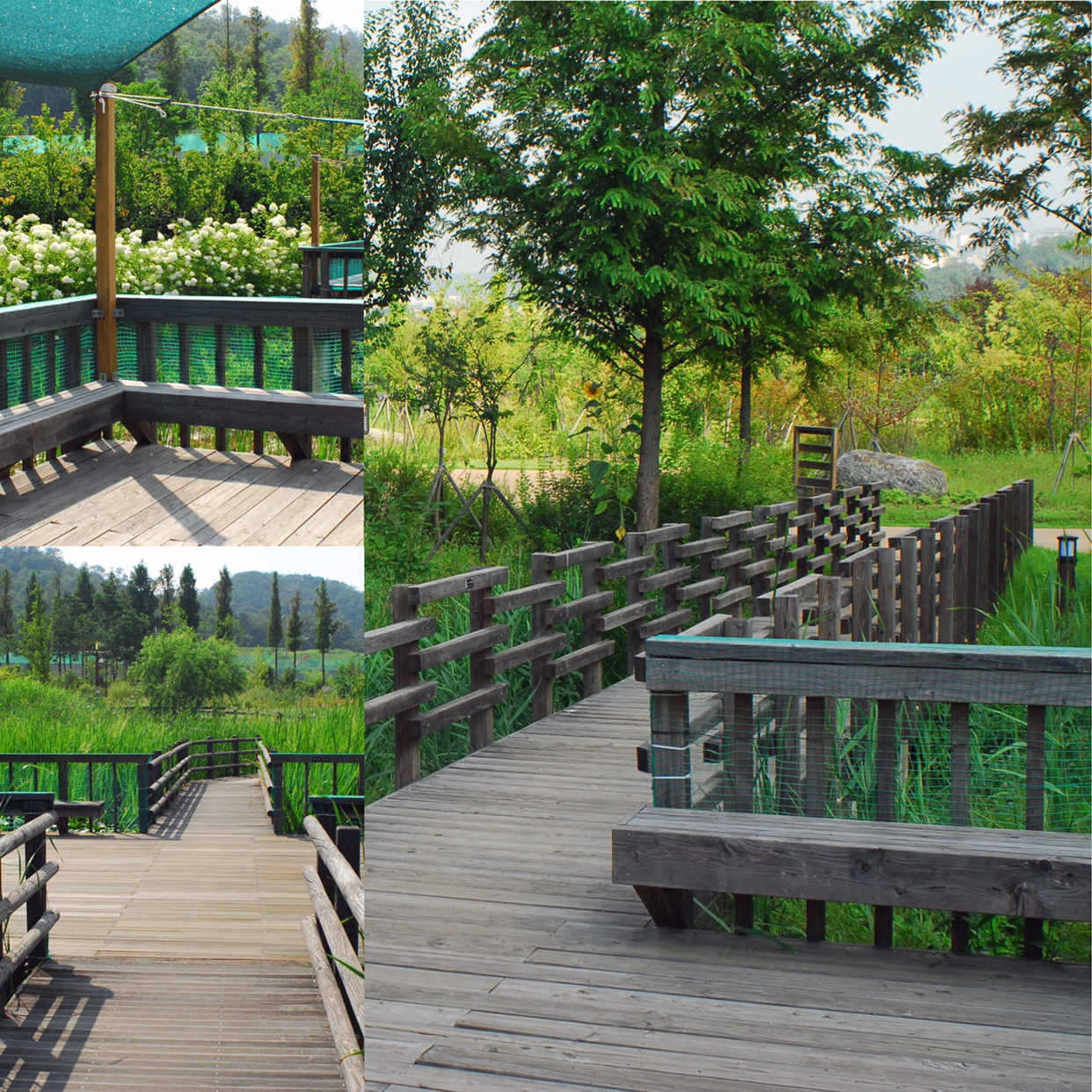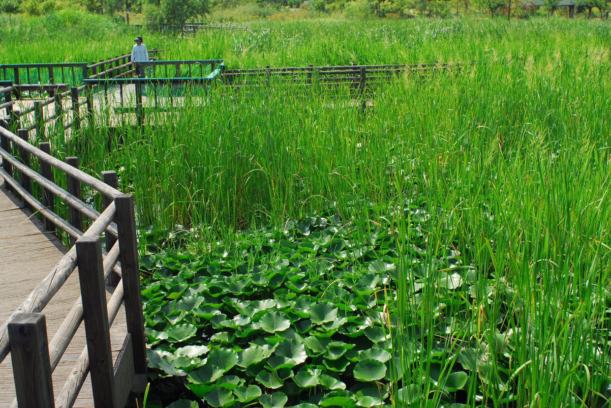 광장 오른쪽 입구를 통해 곧장 들어간다. 들어가자마자 바로 왼쪽에 넓은 억새밭을 마주한다. 그건 그 아래가 모두 습지라는 말이다. 나무 데크 위로 갈대밭 안쪽으로 쑥 들어갈 수 있다. 데크 위 의자에 앉아서 오래도록 이야기 하고 쉴 수도 있다. 내려다 보면 갈대밭 사이로 작은 물고기들도 보인다. 물론 이 불볕더위에는 말도 안 되지. 가을날 맑은 저녁이라면 이라면, 갈대밭과 변해가는 하늘 색이 당신의 발길을 잡을 것이다. 내가 와봐서 안다.