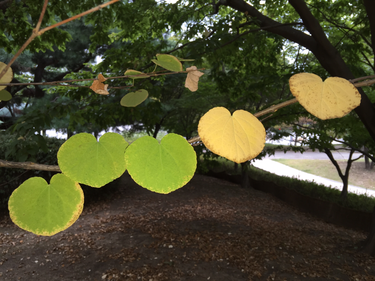 벌써부터 노랗게 변한 계수나무 잎이 떨어지기 시작한다. 계수나무 잎은 은행나무처럼 잎이 떨어져도 원형 그대로 예쁘게 유지하는 경우가 많다. 이유도 역시 은행나무와 마찬가지다. 잎 속의 특별한 성분이 방부제 역할을 하기 때문이다. 곤충들을 물리치고, 잘 상하지도 않게 한다.