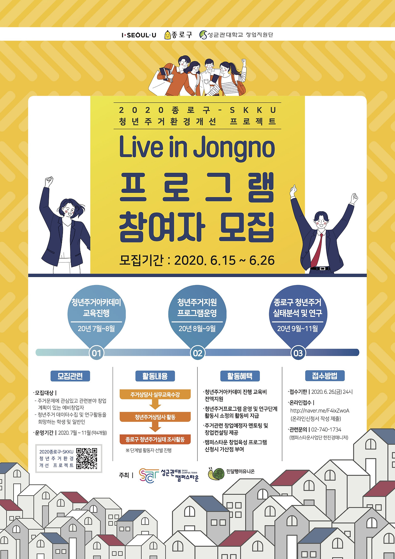 청년주거 사업을 하면서, 자료의 최신화, 주거 상담과 실태 분석 등에 대한 정보가 필요했는데, 운이 좋게도 '성균관대 캠퍼스타운 사업단'과 '민달팽이 유니온'이 진행하는 'Live in Jongno'에 참여하게 되었다.