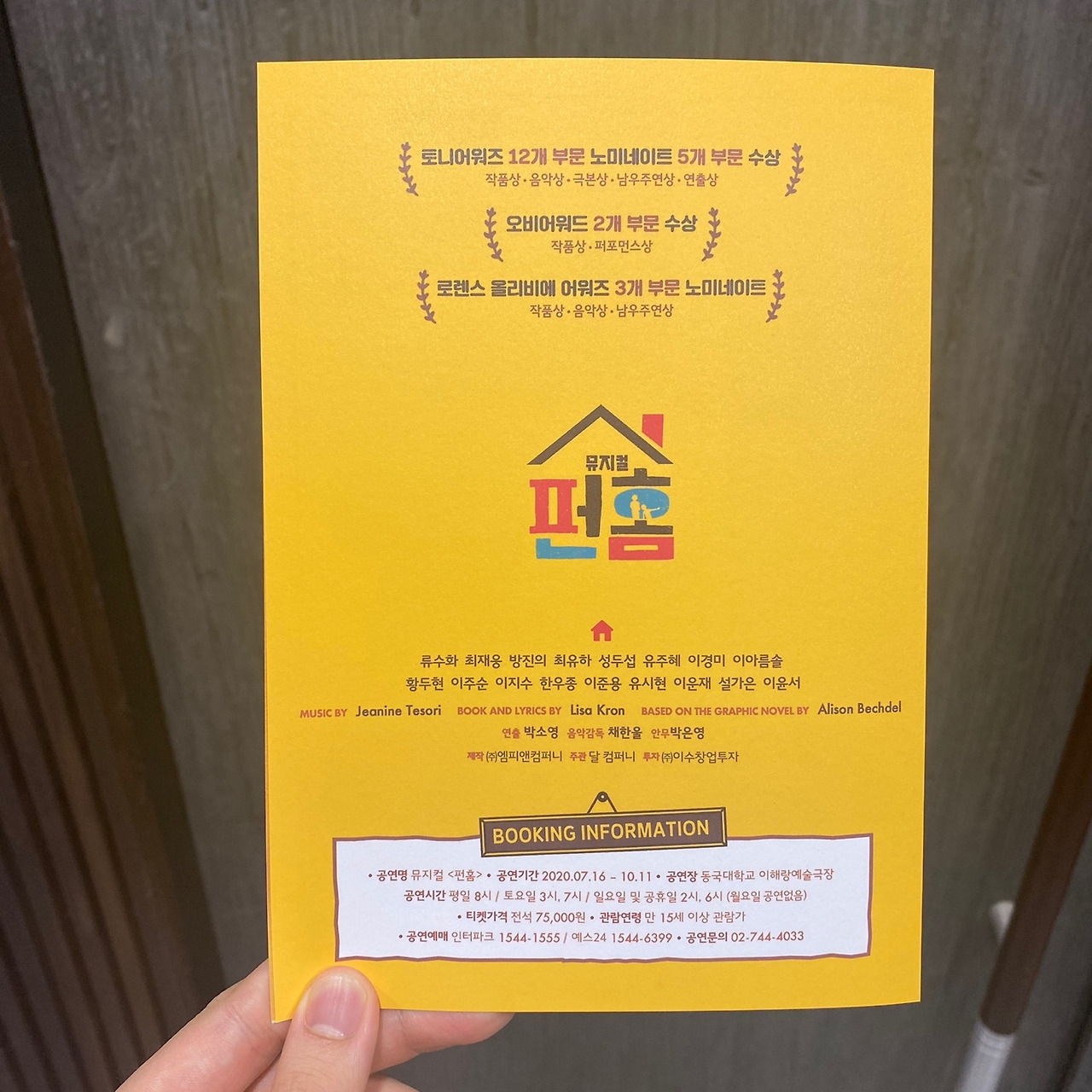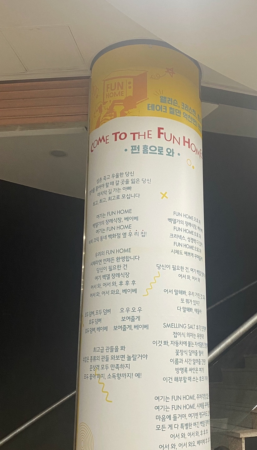 뮤지컬 <펀홈>은 10.11까지 공연된다.