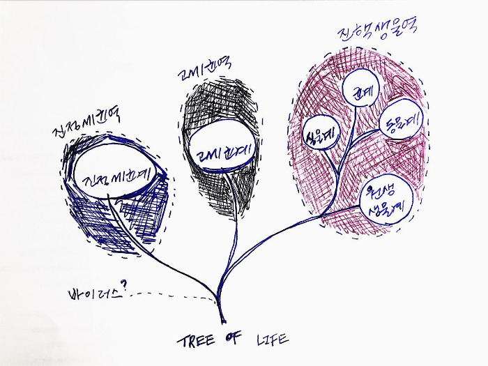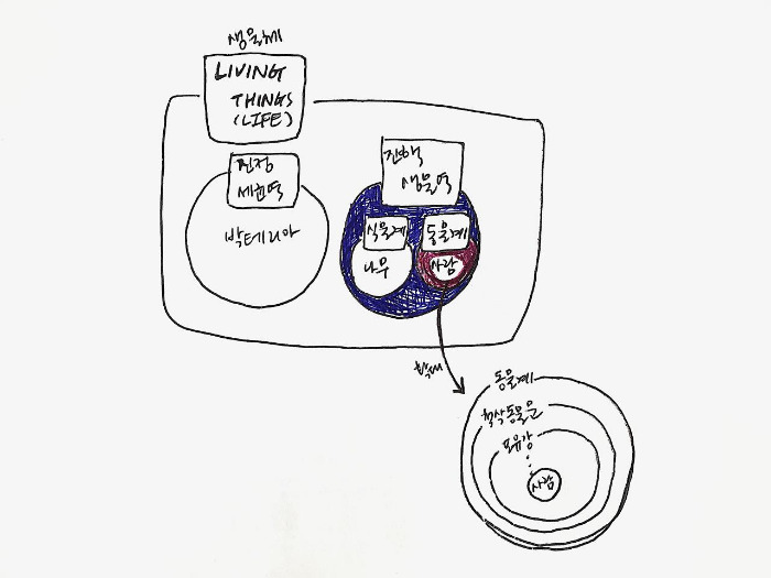 단순한 예시 (박테리아, 나무, 사람)를 통해 위의 분류체계를 이해해보자. 박테리아와 나무, 그리고 사람은 먼저 각자의 특징에 따라 진정세균역 (박테리아)과 진핵생물역 (나무, 사람)으로 가장 크게 나뉜다. 그중 진핵생물역에 속하는 나무와 사람은 세부적인 특징에 따라 또다시 식물계 (나무)와 동물계 (사람)로 나누어진다.