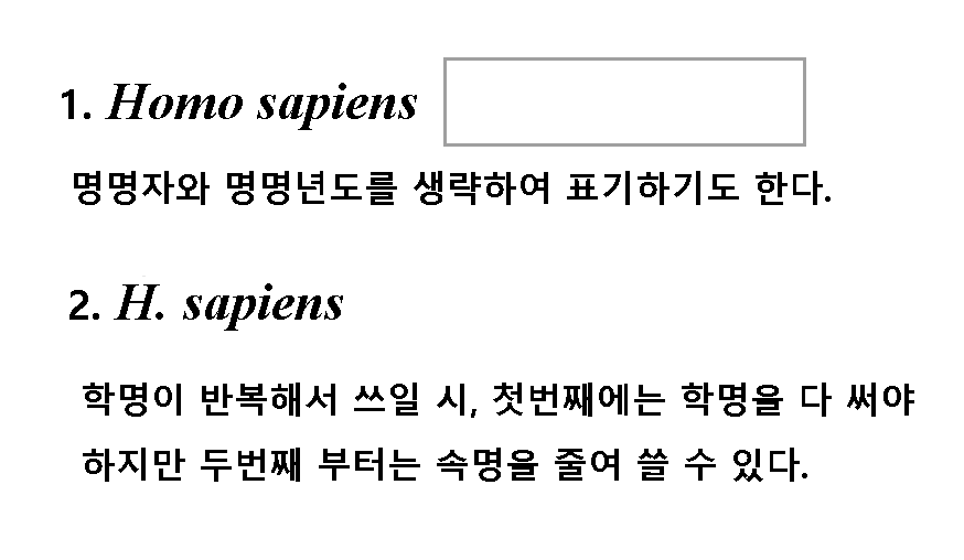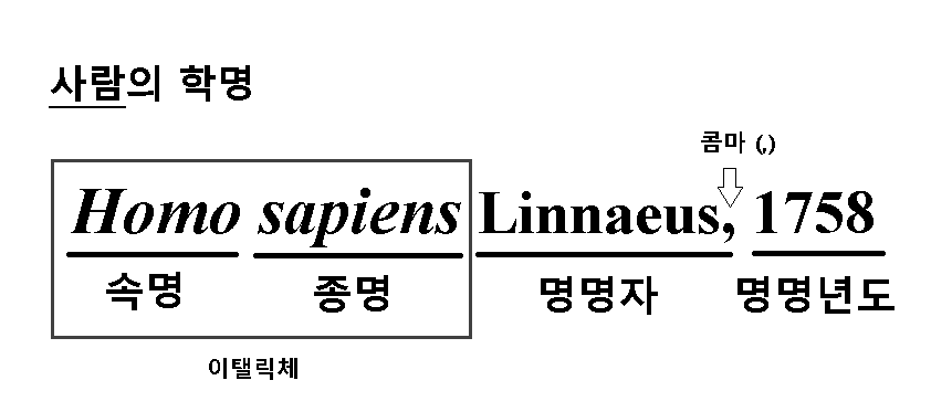 다시 한번 복습하자면, 학명은 "학술 활동의 편의를 위해 붙이는 표준화된 생물들의 이름"인데 원칙적으로 린네가 확립한 '이명법 (binomial nomenclature)'을 따라 학명을 붙이게 된다.