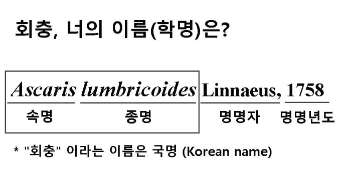 이제 본격적으로 '학명 (이명법)'과 '기생충의 명명법'에 대해서 알아보도록 하자!