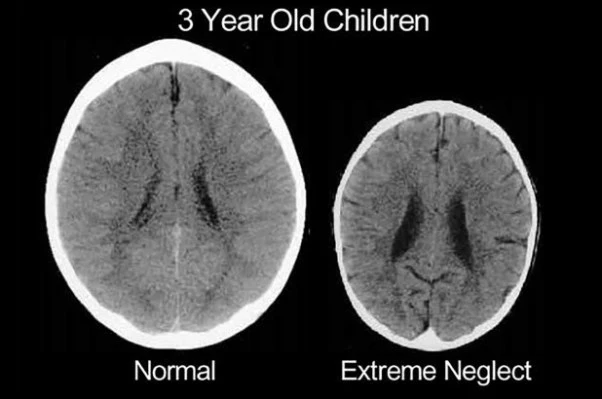 2012년, 영국 텔레그래프 지에 "These two brains both belong to three-year-olds, so why is one so much bigger?" 라는 제목의 기사로 한 장의 사진이 실렸고 이 사진은 각 종 매스컴을 떠들썩하게 했다 [5]. 무관심과 방치, 그리고 학대 속에서 자란 3살 아이의 X-ray 뇌 사진과 일반적인 돌봄과 충만한 사랑을 받으며 자란 아이의 뇌 사진을 대조적으로 보여주는 사진이었다.