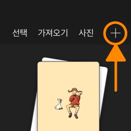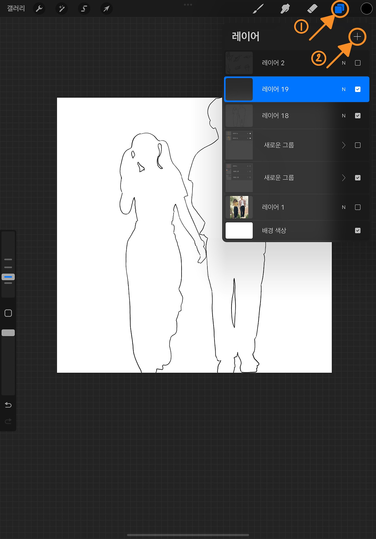 잠깐! 시작하기 전에 오른쪽 위에 종이가 겹쳐진 모양의 '레이어 선택' 아이콘을 눌러 새 레이어를 추가해 보자.