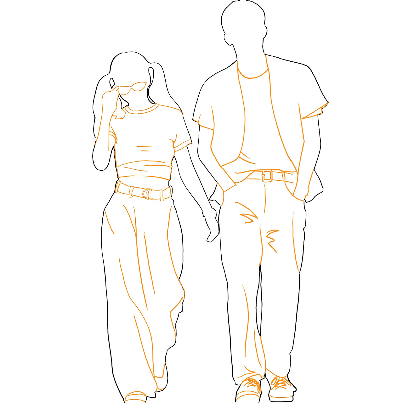 새로 만든 레이어를 클릭한 상태로 옷과 옷의 경계부를 따라 외곽선을 그어보자. 팔과 옷소매의 경계, 티셔츠와 셔츠의 경계, 허리와 바지의 경계, 바지끝단과 신발의 경계를 자연스럽게 따라 그려보자. 약간의 옷 주름 등 디테일을 표현하고 싶다면 가볍게 그어보는 것도 좋다.