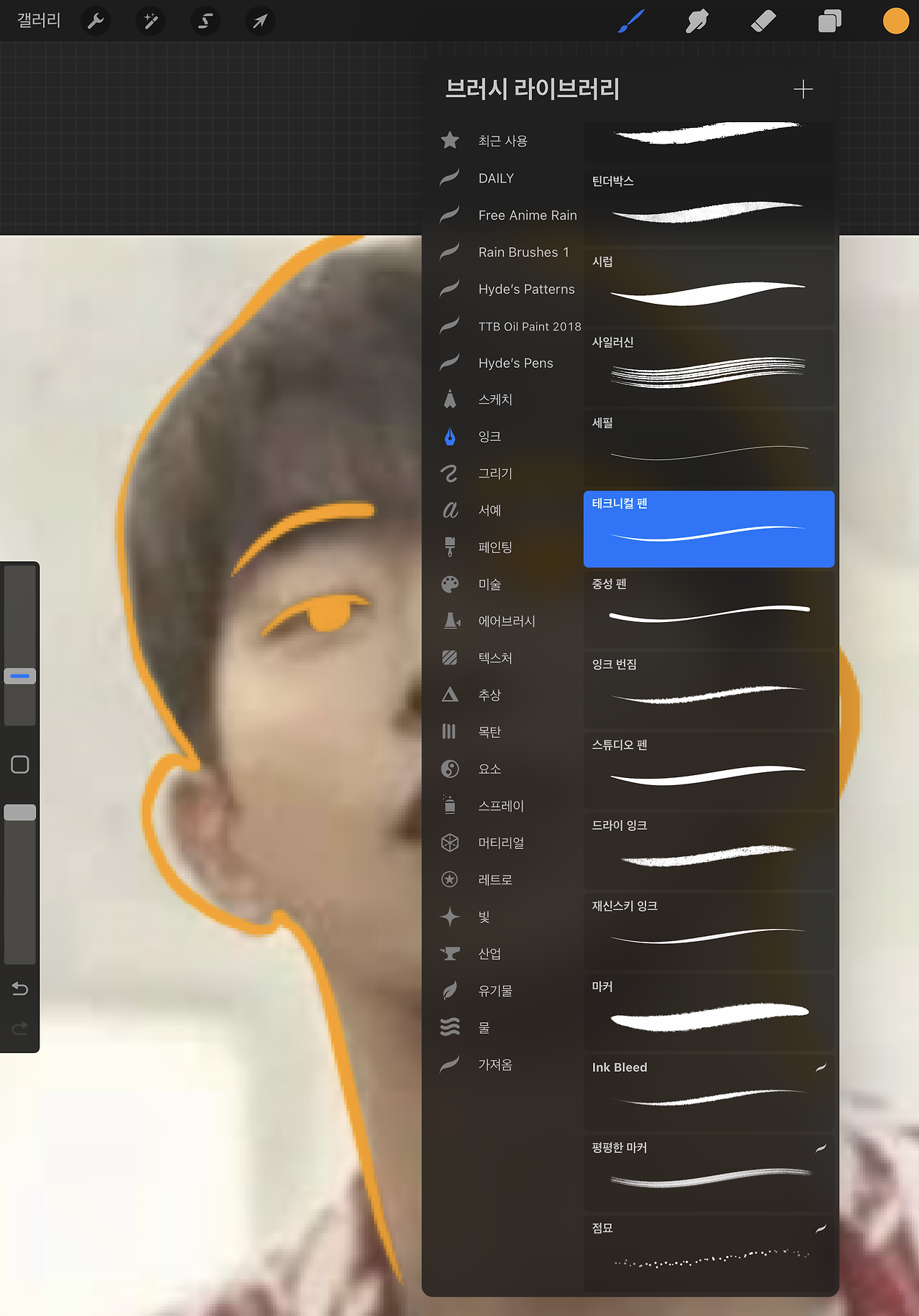 테크니컬 펜 브러쉬를 선택하였다면 본인만의 느낌에 따라 필압을 조절하며 그려보자.