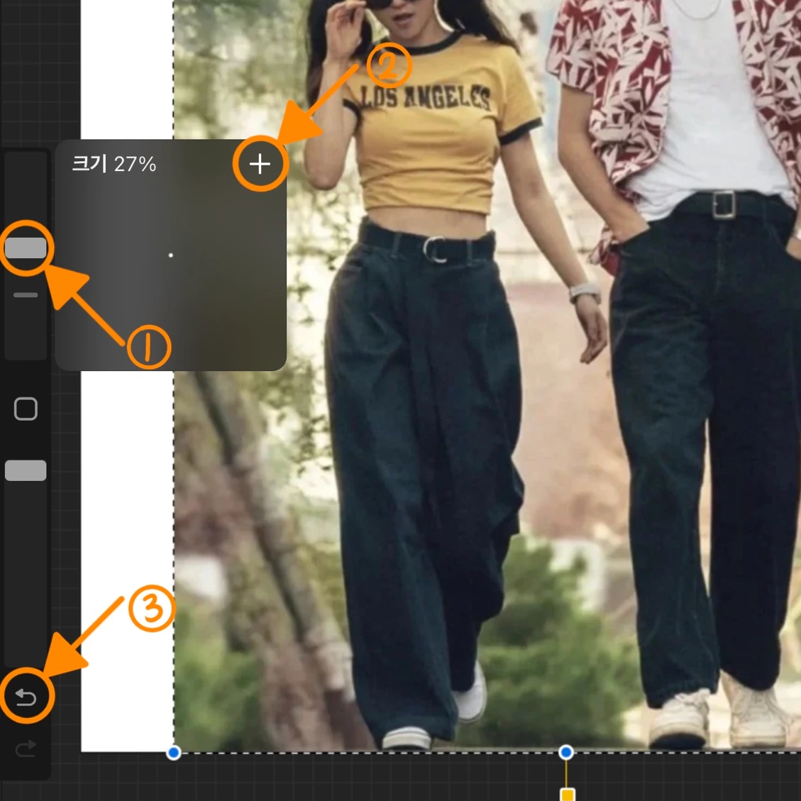 [3번] 되돌아가기. 그림을 잘 못 그렸다면 이전으로 되돌릴 수 있다. 화면을 손가락 두 개로 터치해도 된다. 오른손잡이라면 왼손가락을 화면 위에 살짝 띄운 채로 작업한다면 빠르게 되돌릴 수 있다.