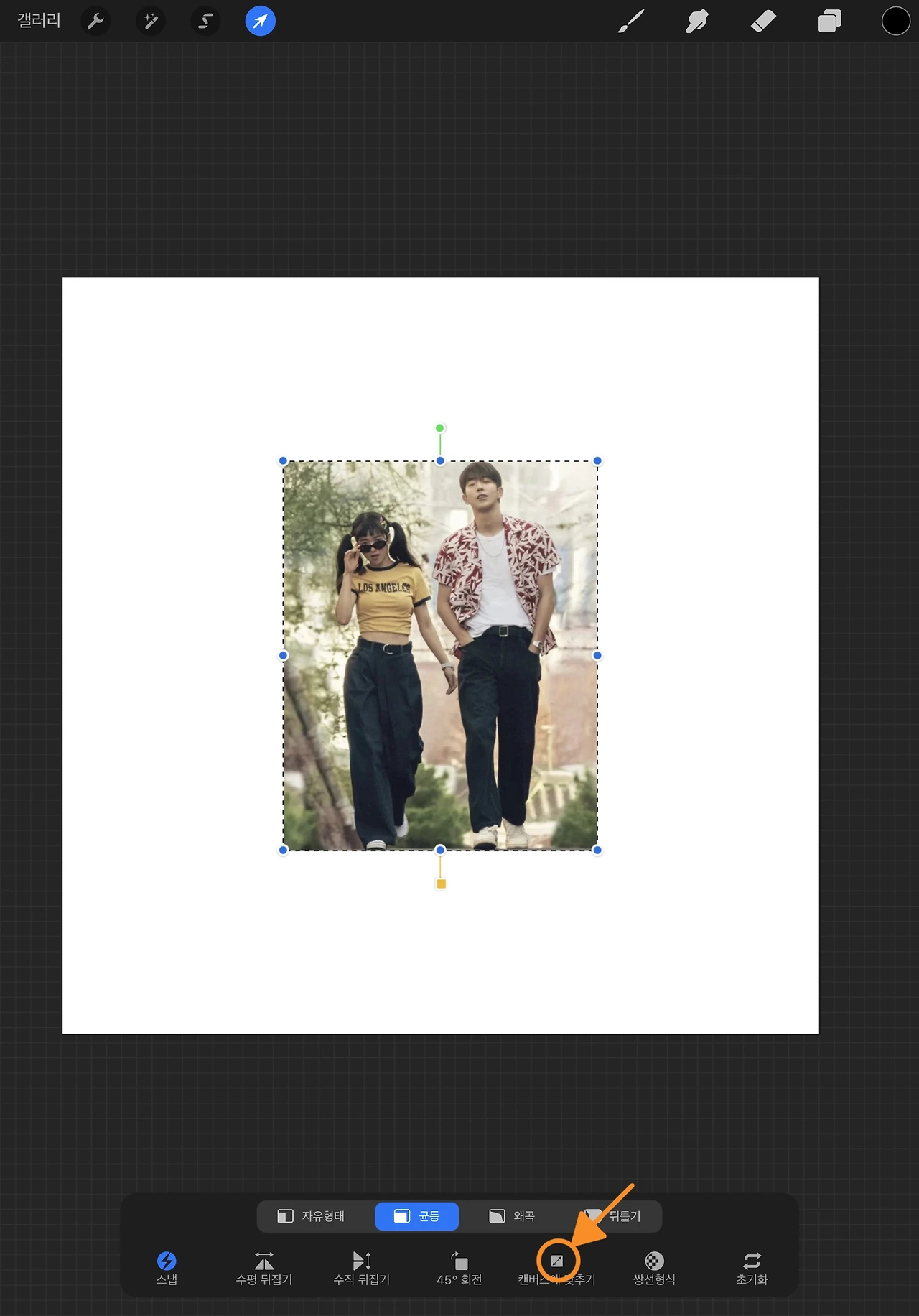 아래에 '캔버스에 맞추기'를 눌러 크기를 조정하자.