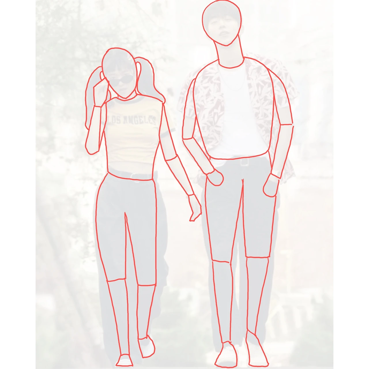 형태를 나누어 보는 방식은 전체 비율을 맞추는 데도 사용되지만 그다음 단계에서 얼굴을 그릴 때, 손을 그릴 때 등 계속해서 사용된다. 즉, 내가 그림을 그릴 때 선을 어디에 사용해야 할지를 결정할 수 있게 해주는 유용한 도구라고 할 수 있다. 이는 그림을 따라 그릴 때뿐 아니라 그림을 연습할 때에도 몹시 유용한 방식이니 잘 익혀두는 편이 좋을 것이다.
