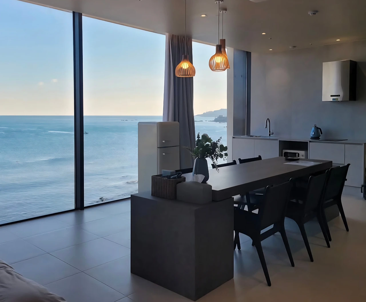 저녁 메뉴는 목살구이와 월남쌈이었다. 남편은 베란다의 노을을 배경으로 고기를 굽고, 나는 바다가 보이는 부엌에서 채소를 썰고 물을 데웠다. 접시를 꺼내 통창 가득 바다를 마주 보는 식탁에 앉았다. 따끈한 물에 불린 라이스페이퍼에 양배추와 당근과 파프리카와 새싹 채소와 파인애플과 고기 한 점을 싸서 칠리소스와 땅콩소스를 듬뿍 찍은 후 입에 넣었다. 아삭아삭아삭 소리의 생기가 흐뭇했다.