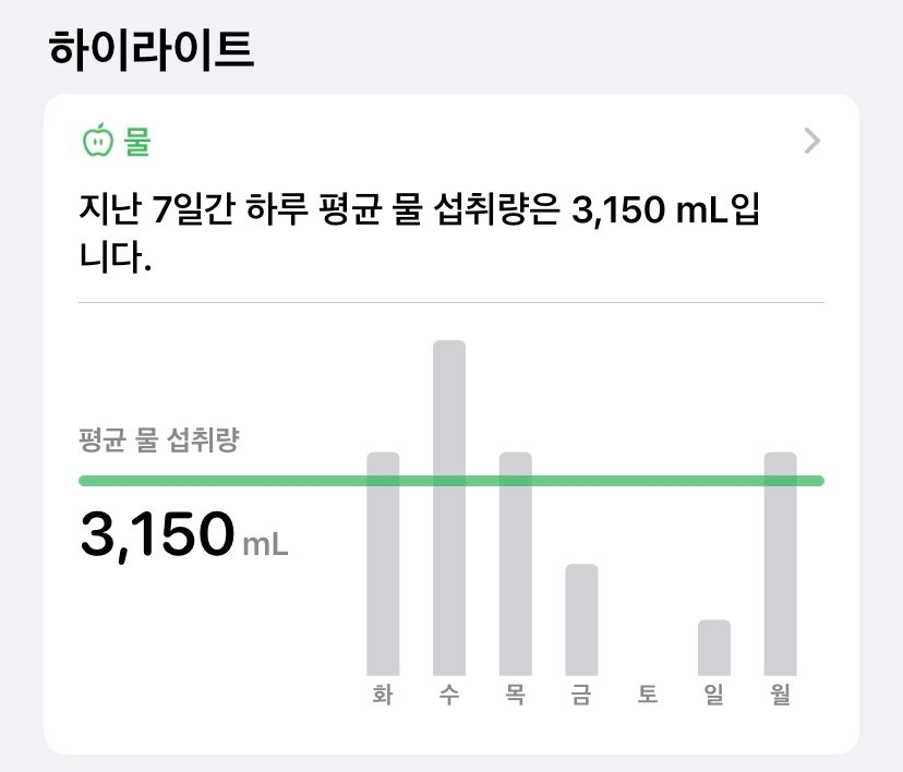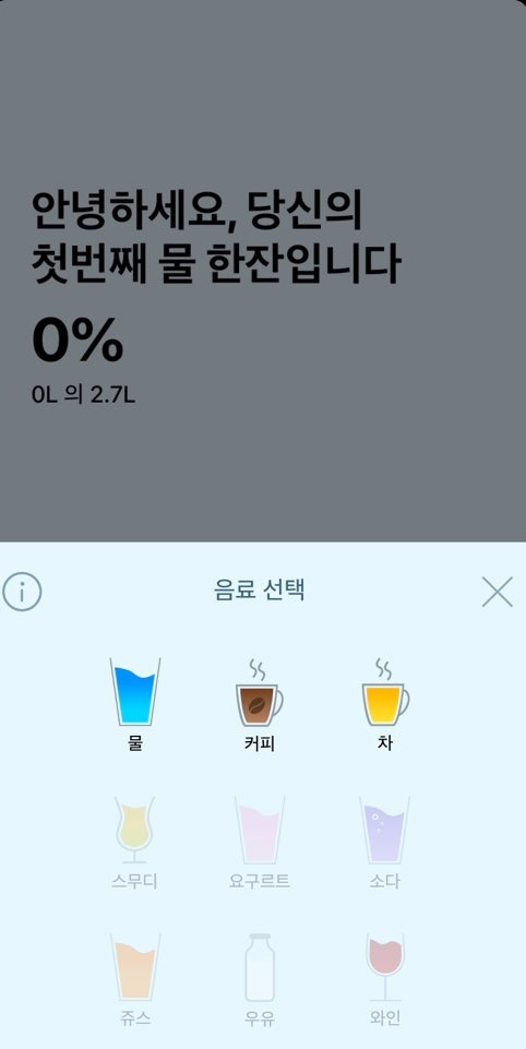 그리고, 오늘 그리고 지금까지 매일매일 마신 물의 양이 얼마나 되는지 수치화하여 보여줍니다. 이러한 기록으로 내가 얼마나 꾸준하게 물을 마시고 있는지, 설정된 목표를 얼마나 달성했는지 등을 시각적으로 한 눈에 볼 수 있게 되고, 경각심을 가지게 되어 건강을 챙길 수 있도록 만들 수 있다는 것이 이 앱의 큰 장점이라고 할 수 있습니다.