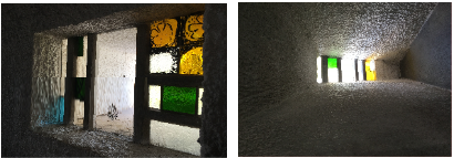 두꺼운 벽이 만든 어둠을 뚫고 떨어지는 빛들을 보아라.