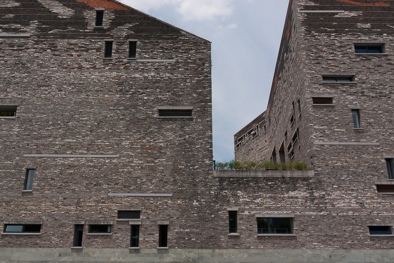 왕슈의 가장 유명한 작품 중 하나인 닝보 박물관. 외관의 자잘한 마감재 하나하나가 지역의 폐 건축자재에서 모은 기왓장들입니다. 사진 : Mare / flickr.com