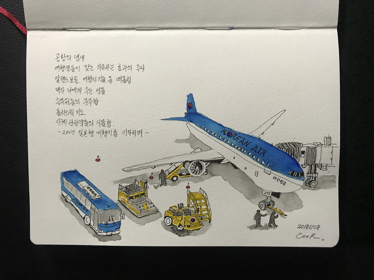 제복을 입고 지나가는 승무원들의 플라스틱 미소.