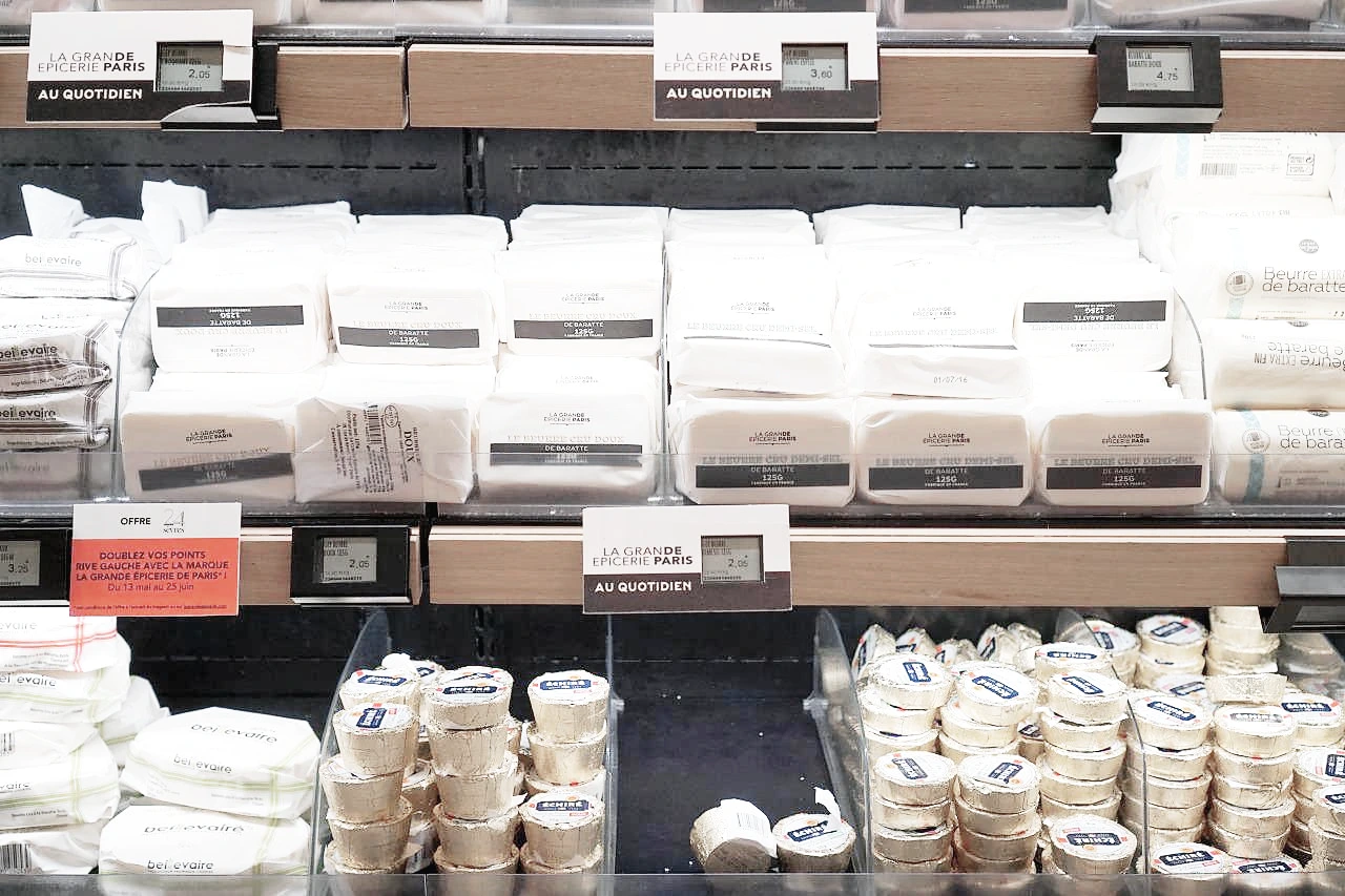 버터계의 에르메스, 그리고 죽기 전에 먹어봐야 할 음식으로 선정된 '에쉬레 버터'를 3유로대에 살 수 있다. 한국에서는 같은 용량에 2만 원대이니 가격차이가 상당하다. 프랑스 유명 고급 레스토랑 셰프들이 선호하는 버터로 빛나는 100년 전통의 역사를 갖고 있다. 부드럽고 풍미가 좋아 바게트에 발라먹기만 해도 최고. 에쉬레 버터 외에도 프랑스 유명 버터들을 구매할 수 있다.