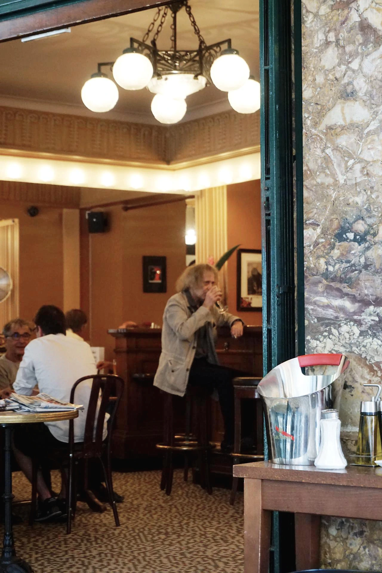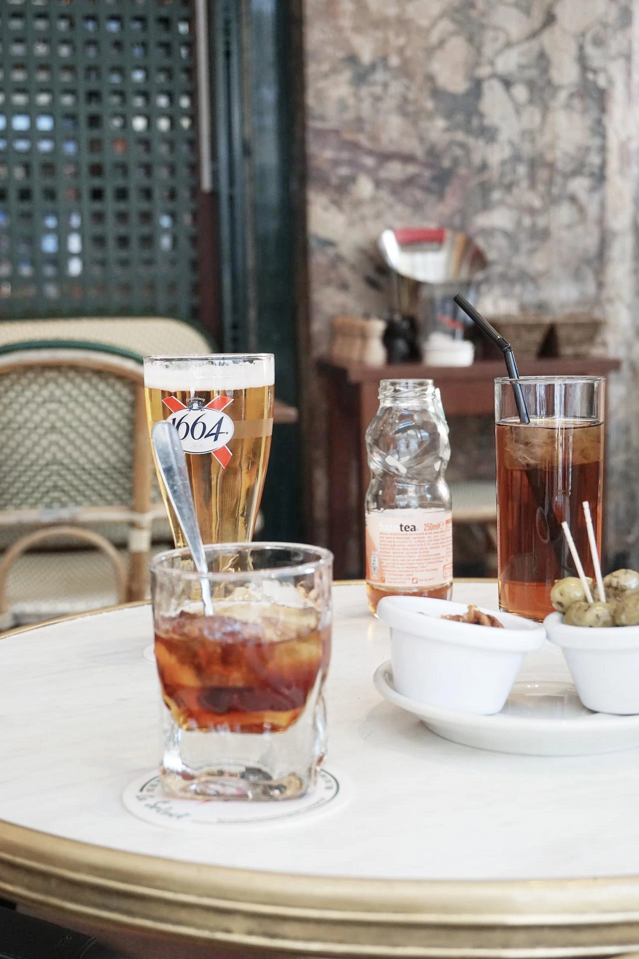 저녁 무렵 방문한 르 셀렉트. 철야 카페로 유명했던 카페라 일부러 늦은 시간에 갔지만, 여름날 파리의 밤은 10시가 되어서야 어두워진다. 저녁 7시는 낮처럼 환해 조금은 아쉬웠다. 식사 전 마시기 좋은 달달한 끼르 한 잔을 주문했다. 끼르는 와인을 베이스로 한 칵테일이라 부담 없이 마시기 좋다. 카페 르 셀렉트는 50여 가지의 위스키와 다양한 칵테일이 준비되어 있는데 카페 안에 진열된 수많은 위스키 병들이 조명처럼 반짝인다.