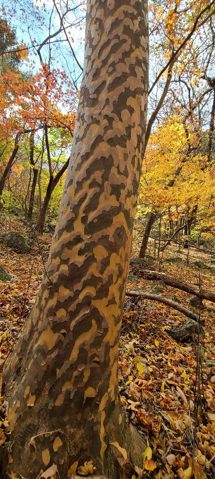 친구가 사진 찍어 보내준 지리산 <노각나무>입니다. 황갈색 피부를 찬찬히 보면 사슴뿔과 닮았지요? 그래서 처음엔 녹각(鹿角) 나무로 불렸다는데