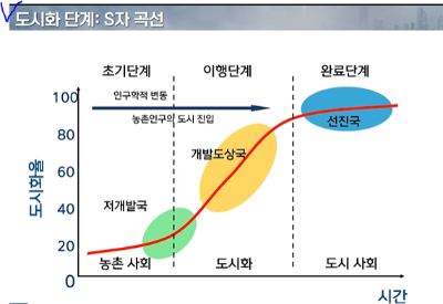[그래픽] 도시화 단계: S자 곡선(출처: 부동산자락 Tistory)