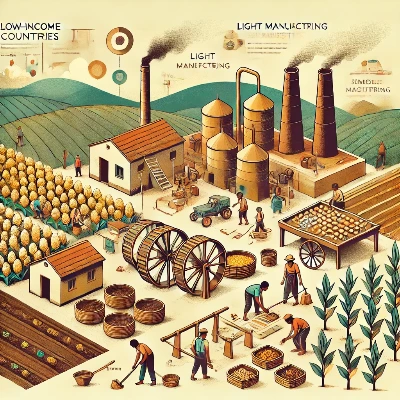 저임금 국가의 주산업은 농업 및 경공업 등 단순 노동 집약적 산업에 집중되어 있다. 이러한 산업은 고차원적 작업 지식이나 고도의 수행 능력보다는 단순 노동을 기반으로 한다. 따라서 최대한 많은 인원이 투입되어 작업을 수행하는 방식이 효율적이다. 이에 따라 국가와 가계는 아이를 ‘확실한 생산재’로 인식하게 된다. 이들에게 아이는 곧바로 노동력으로 활용 가능한 자원이기 때문이다. 이러한 인식 하에서, 저임금 국가의 가계 및 국가는 아이를 최대한 많이 낳아 효과적인 노동력을 확보하고자 한다. 이는 저·중·고임금 국가 중 저임금 국가의 출산율이 가장 높다는 지표로 나타난다.