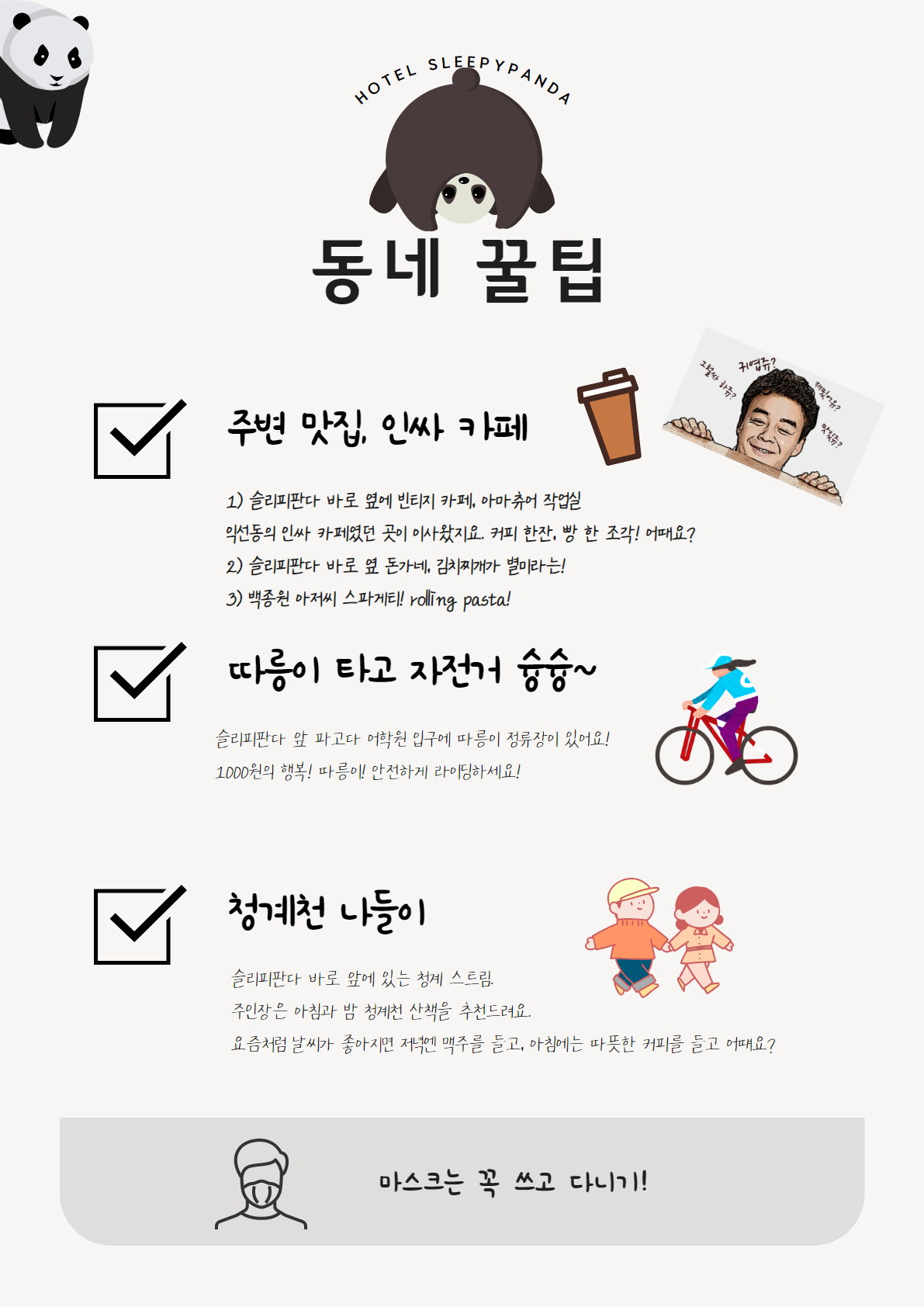 저는 청계천변에 위치한 슬리피판다라는 작은 숙박업소를 운영하고 있어요.