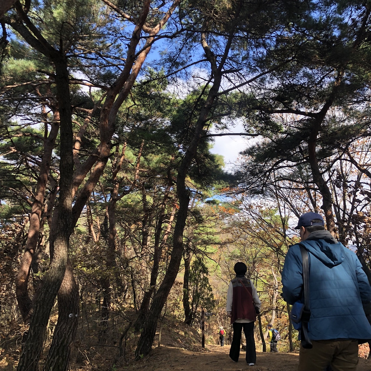 나는 끝내 와플 2장과 반건시 2개를 먹고 핸드드립 커피를 연달아 2잔을 마시며 2-2-2의 행복한 브런치를 경험했다. 그리고 아침 산책 (트레킹)을 하기 위해 마을 앞산을 올랐다. 그 산이 월악산 자락인 줄은 나중에야 알았다. 그렇게 꼭대기에 위치한 사과밭에 도착했다.