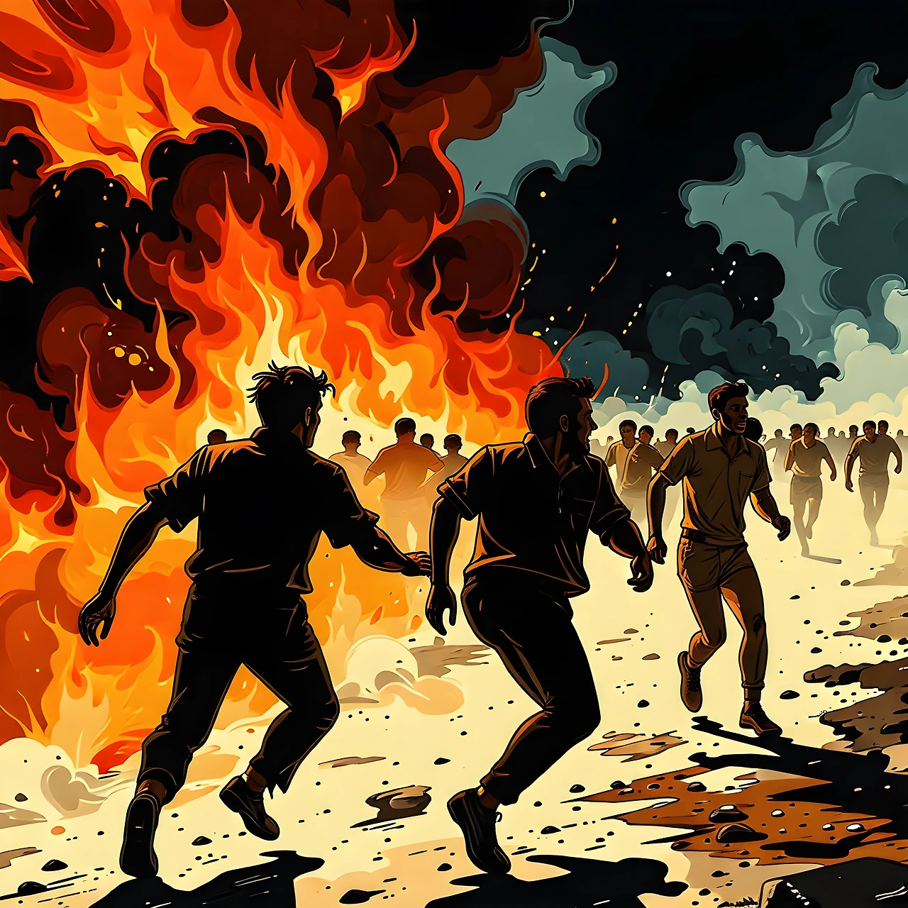 문을 열자, 눈앞이 붉게 물들었다. 길 건너 솜공장에서 불길이 솟구치고 있었다. 소방차의 사이렌 소리와 사람들의 비명도 내 귀에는 제대로 들어오지 않았다. 시뻘건 불덩이가 튀는 소리, 타닥타닥 나무가 타는 소리, 그리고 동네 사람들이 서로를 부르는 다급한 목소리. 마치 지옥문이 열린 듯한 공포가 몰려왔다. 불이 살아있는 것처럼 움직였고, 그 불덩이가 금방이라도 우리를 삼킬 것만 같았다. 숨이 막혔다. 다리는 떨렸고, 심장은 미친 듯이 뛰었다.