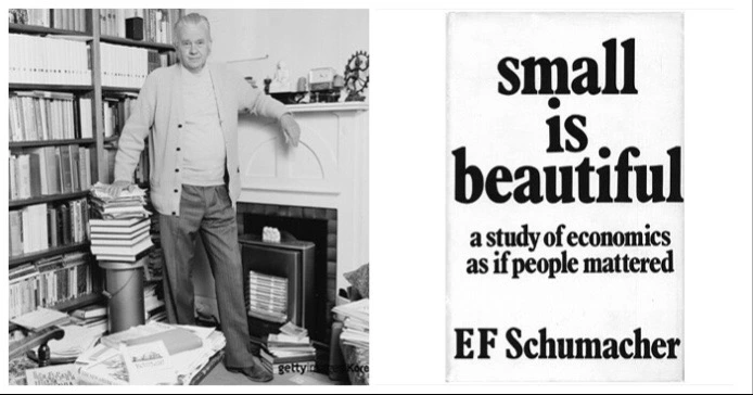 슈마허는 ‘중간기술(intermediate technology)’이라는 용어로 그 개념을 시작하였다. 당시 슈마허는 선진국과 제3세계의 빈부 양극화 문제에 대해 고민하던 중 간디의 자립 경제 운동과 불교 철학에서 영감을 받아, 올바른 개발이 달성되기 위해서는 중간 규모의 기술이 필요하다고 주장한다. 특히, 1970년대의 석유파동과 같은 에너지 대란 후 자원의 고갈과 환경을 파괴하는 과도한 대량생산 방식에 대한 문제를 제기한다. 지구의 자연과 자원, 에너지를 과도하게 사용하게 되면 인류의 지속적인 생존에 문제가 된다는 주장이다. 적절한 수준의 과학기술을 사용할 때 인류의 지속 가능한 미래가 가능하다는 이야기다.