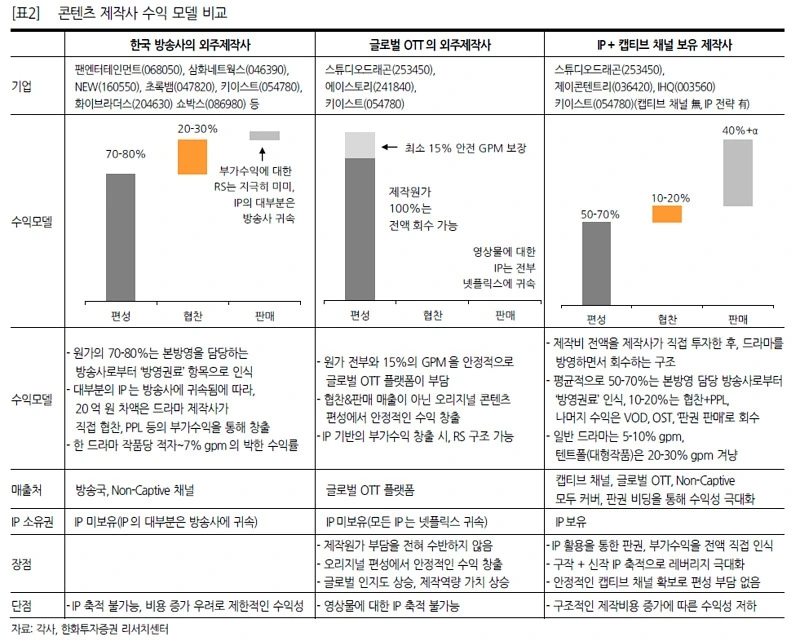 콘텐츠 수익 모델 비교 (출처=한화투자등권 리서치센터)