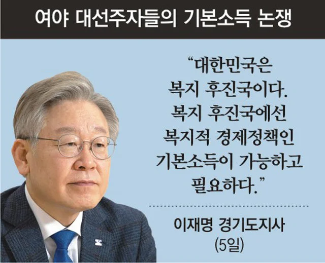 이재명 대표가 마치 경제를 위해 복지 담론을 양보한다는 느낌을 주어서는 곤란하다. 기본소득, 기본사회 주장의 선두주자의 인식이 이 정도에 그친다면 대한민국의 내일은 어둡다. 고민과 숙의가 이 정도에 그친다면 이재명 대표와 민주당은 경제도 복지의 고도화된 상관관계를 이해하지 못한 것이다. 경제에 어설프고 그 이유를 들어 복지에 인색한 지난 진보 정권의 전철을 되풀이할 가능성만 키우게 된다.