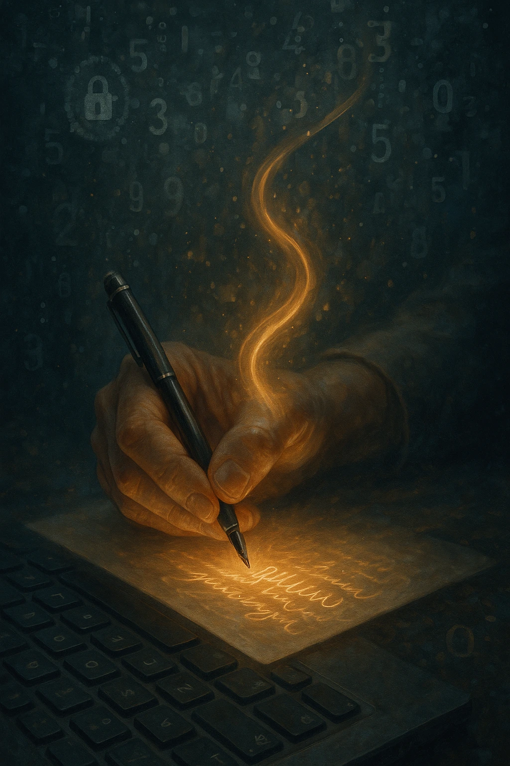 다시 글쓰기 플랫폼의 본인인증이라는 현실의 문제로 돌아와 이 아이러니의 거울을 들여다보자. 디지털 세계에서의 본인인증은 결국 고유식별자라는 기호의 가면을 통과해야만 한다. 고유하게 나를 식별해 준다는 것은, 내면의 본질로서의 '나' 그 자체가 아니라, 주민등록번호나 여권번호 같은 숫자의 조합, 그리고 그것을 기반으로 만들어진 각종 디지털 인증서들이다. 금융 기관에 피와 살을 지닌 물리적인 실체로서의 내가 직접 찾아간다 한들, 이러한 고유한 식별 도구가 없다면 아무것도 할 수 없는 세상이 되었다. 참으로 기묘하고도 슬픈 풍경이다. 나의 존재에 대한 인증이, 정작 살아 숨 쉬는 나 자신의 현존이 아니라, 나를 상징적으로 표현하는 기호들의 연극으로 대체되는 세상에 살고 있는 것이다.