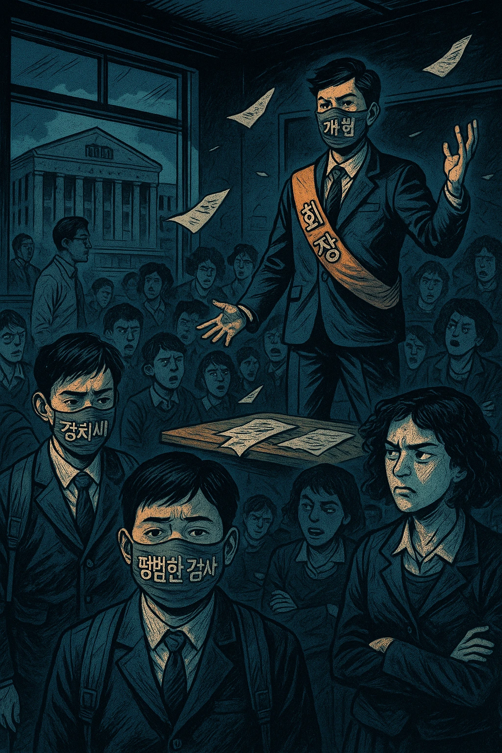 칼럼이 열어젖힌 문은 참으로 유혹적이었다. 50년간 전교 회장과 반장은 언제나 성적 상위권 학생들이 차지했고, 어느 순간 새 이사장이 나타나 “평범한 하위권 학생도 지도력을 발휘할 수 있다”고 선언했다. 그러나 결과는 참혹했다. 교실은 두 패로 가르마를 타고, 적잖은 학생이 “내가 왜 성적 하위권인 이들의 말을 들어야 하는가”라며 분노했다. 언뜻 보면 검찰 조직의 전형을 그린 풍경이다. 기존 특수부 검사들을 몰아내고, 다소 눈에 띄지 않았던 평범한 검사들을 전면에 내세운 문재인 정부의 인사 개편을, 이사장의 일방적 혁신 의지와 겹쳐 해석할 수 있다. 하지만 여기서 멈추지 않고 더 들여다 볼 필요가 있다.