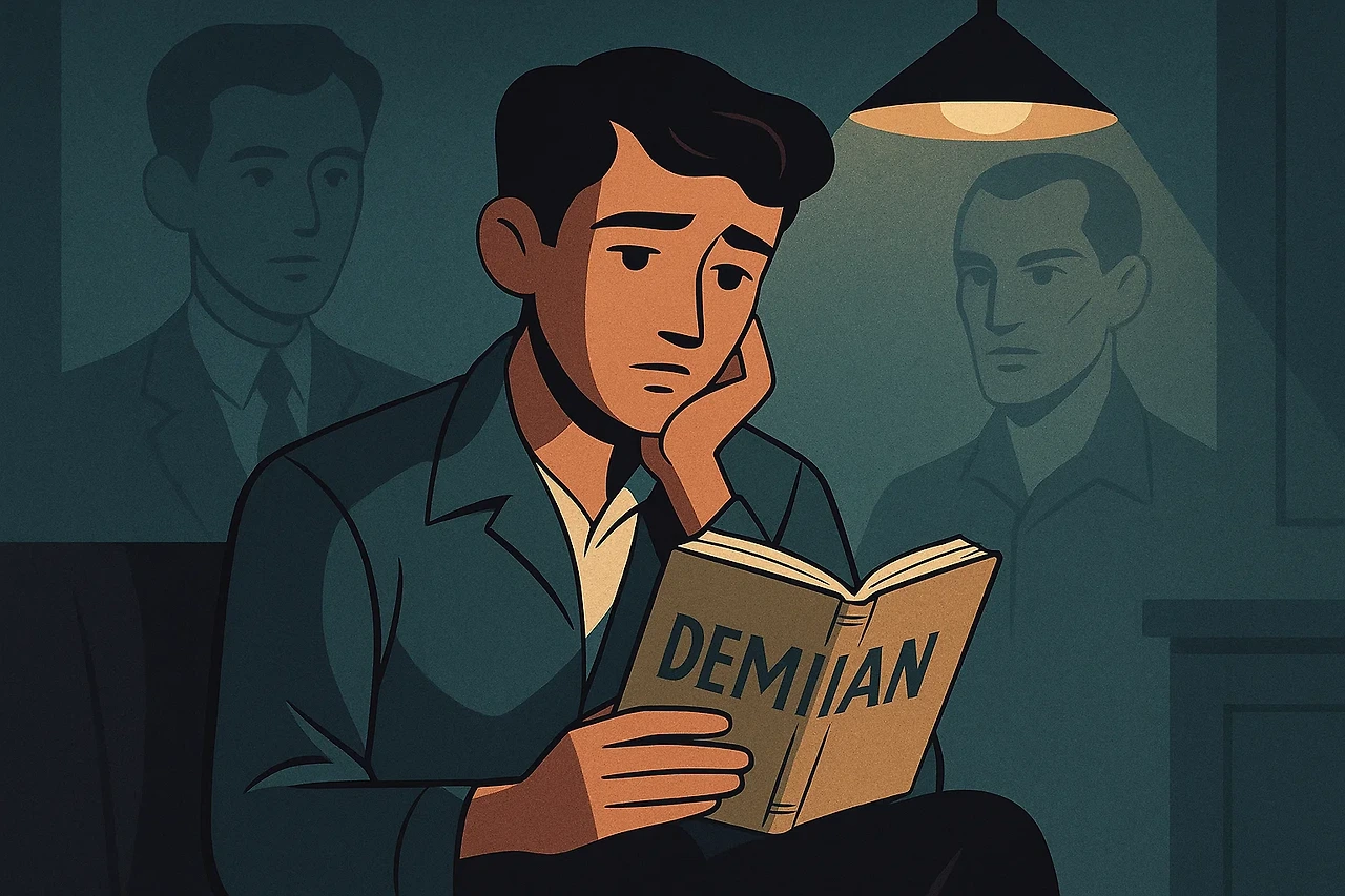 막스 데미안은 시클레르의 불안을 꿰뚫는 존재였다. 그는 카인과 아벨의 이야기를 통해, 스스로를 금지해야 할 바깥이 아닌, 금지된 것을 넘어설 때 비로소 ‘나 자신’이 나타난다고 전했다.