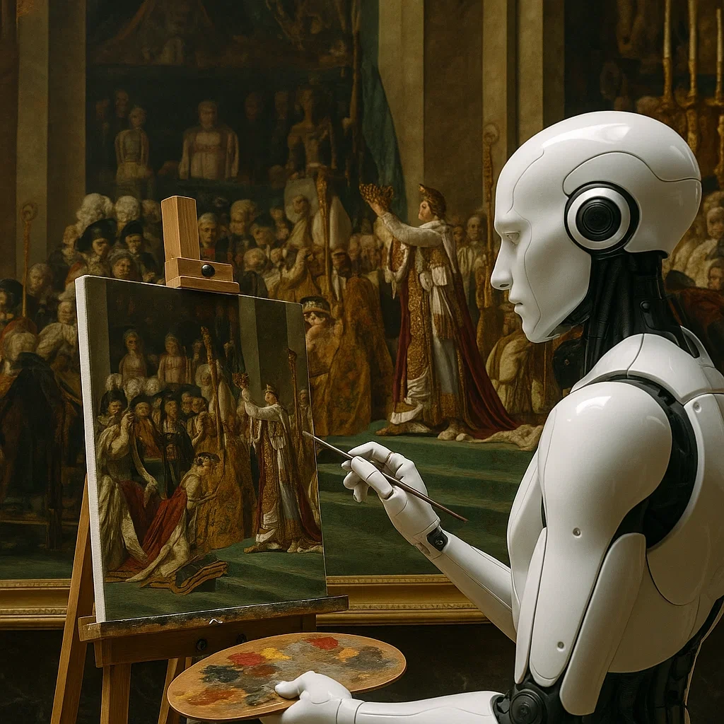 오늘날 우리는 종종 모사와 ‘AI의 재현’을 혼동한다. 거대언어모델은 인간의 문장을 학습하여 그럴듯한 말의 조합을 만들어낸다. 그러나 그것은 결코 모사가 아니다. 기계가 수행하는 것은 사유 없는 패턴의 재배열이며, 상호성과 감응이 결여된 추론적 조합이다. 그것은 손의 기억도, 눈의 떨림도, 마음의 흔들림도 갖지 않는다. 그런 의미에서, AI는 그 어떤 ‘카피스트’도 될 수 없다.