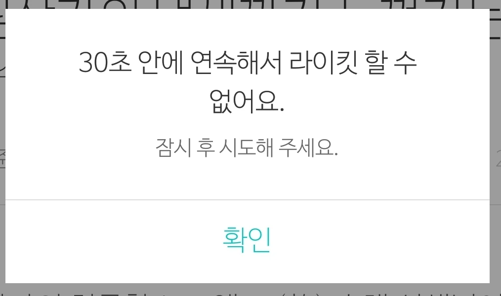 “30초 안에 연속해서 라이킷할 수 없어요.