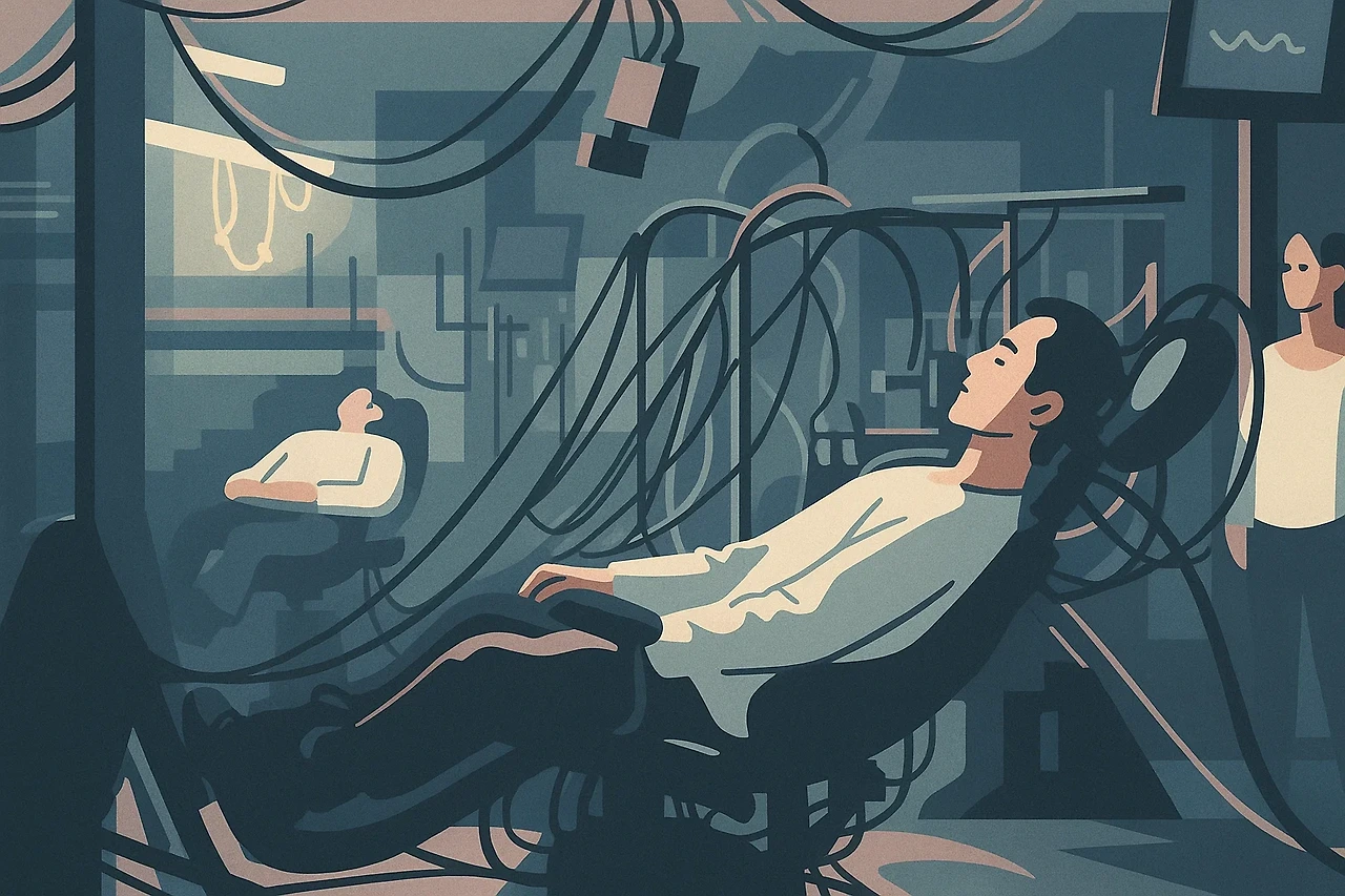 영화 <매트릭스> (1999, The Matrix)는 연결의 기술적 조건을 또 다른 방식으로 드러낸다. 영화 속 인물들은 전선을 통해 가상 현실에 접속하고, 전 세계의 정보가 하나의 인프라로 통합된 세상에서 살아간다. 인간이 경험하는 현실이 실제가 아니라, 네트워크를 통해 구성된 거대한 시뮬레이션이라는 설정은 극단적이지만, 인터넷이 사회를 어떻게 변화시키는지를 은유적으로 보여준다. 정보의 즉각적 연결은 경험의 실체를 흔들며, 인간이 살아가는 세계 자체를 가상화한다.